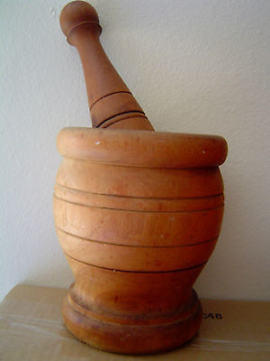 VINTAGE LARGE PRIMITIVE WOOD MORTAR & PESTLE