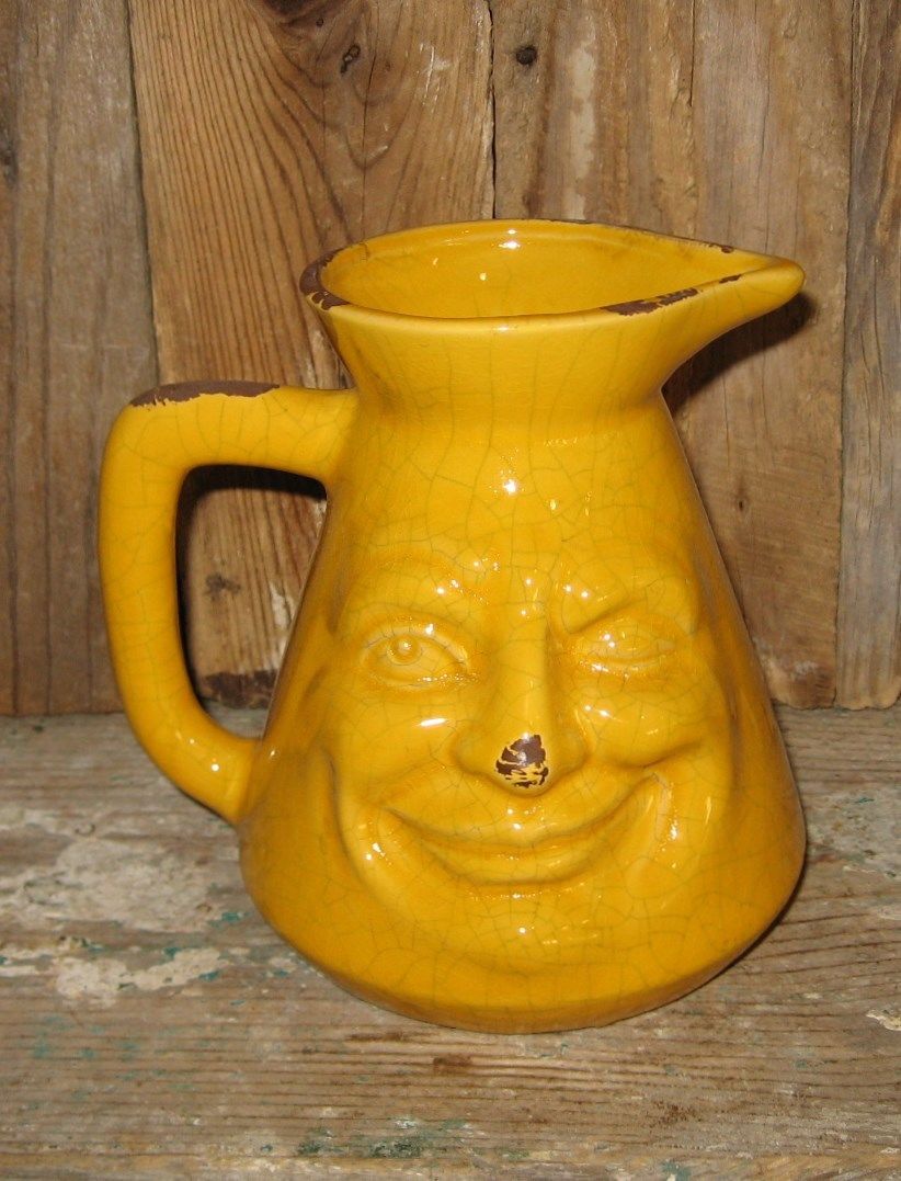 Title (ebay affiliate link): Pottery PITCHER*Man in the Moon/Sun Smiley Face-Primitive/French Country Decor