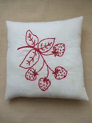 Title (ebay affiliate link): Primitive Vintage Redwork Quilt Block Cupboard Tuck Pillow Strawberries