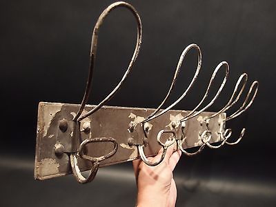 Antique Vintage Style Country Wall Mount Coat Hat Rack Metal Hooks Old Paint