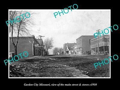 OLD LARGE HISTORIC PHOTO OF GARDEN CITY MISSOURI, THE MAIN STREET & STORES c1910