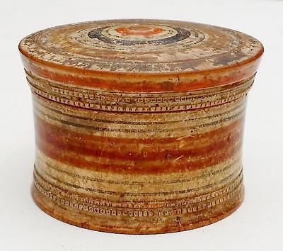 1820 Pennsylvania TREEN BOX ORIGINAL PAINT Carved SCREW TOP String/Thread Holder