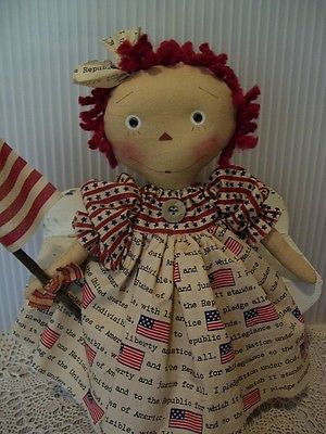 PRIMITIVE RAGGEDY ANN ~americana annie~pledge of allegiance~flag~