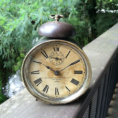 Antique Ansonia Alarm Clock Peg Leg Advertise Denver Parts or Repair