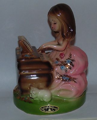 Title (ebay affiliate link): Josef Originals Music Box GIRL PLAYING PIANO with Cat Long Brown Hair Love Story