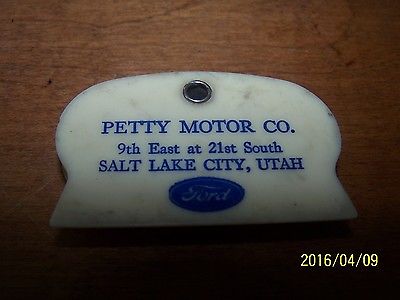 VINTAGE PETTY MOTOR SALT LAKE CITY UTAH FORD CHANGE HOLDER ICE SCRAPER KEYCHAIN