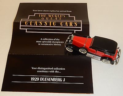 FRANKLIN MINT 1929 DUESENBERG J SCALE 1:43 W/BOOKLET WORLD'S GREAT CLASSIC CARS