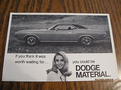 Vintage Rare 1970 Dodge Challenger Promo Postcard Cheryl Miller