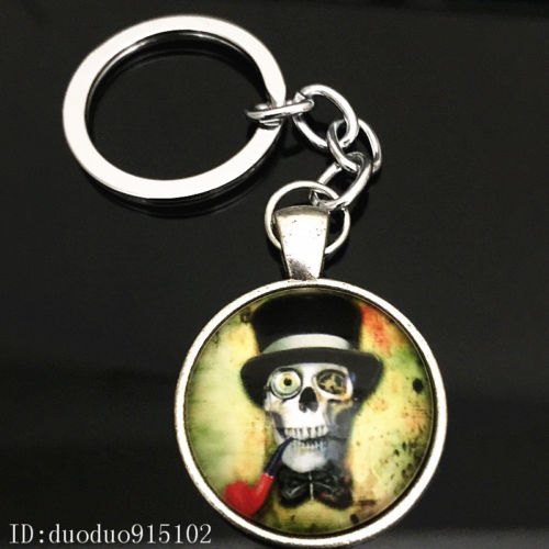 Title (ebay affiliate link): Vintage skull Keychain Cabochon Tibetan silver Glass Metal Key Ring Y28
