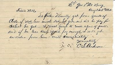 Title (ebay affiliate link): 25 Aug 1864 Headquarters 1st Mo Brig (1st Sgt Clarence S Anderson)