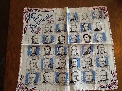 VINTAGE KNOW YOUR PRESIDENTS HANDKERCHIEF 1954