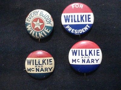 Title (ebay affiliate link): 4 Different 1940 Wendell Willkie EVERY BUDDY Campaign Button ~ Worn by WWI Vets