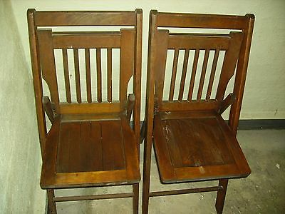 Title (ebay affiliate link): 2 Vintage Wood Folding Chair Deck Church Patio Oak Slats Spindles Nice Patina