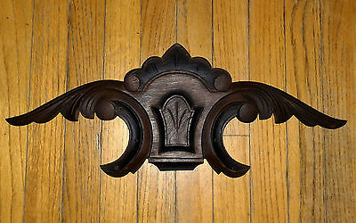 ANTIQUE VICTORIAN ARCHITECTURAL CREST Carved Walnut Wood VTG FURNITURE PEDIMENT