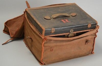 Victorian Leather Bound Canvas Travelling Case or Hat Box with Storm Cover. IYB