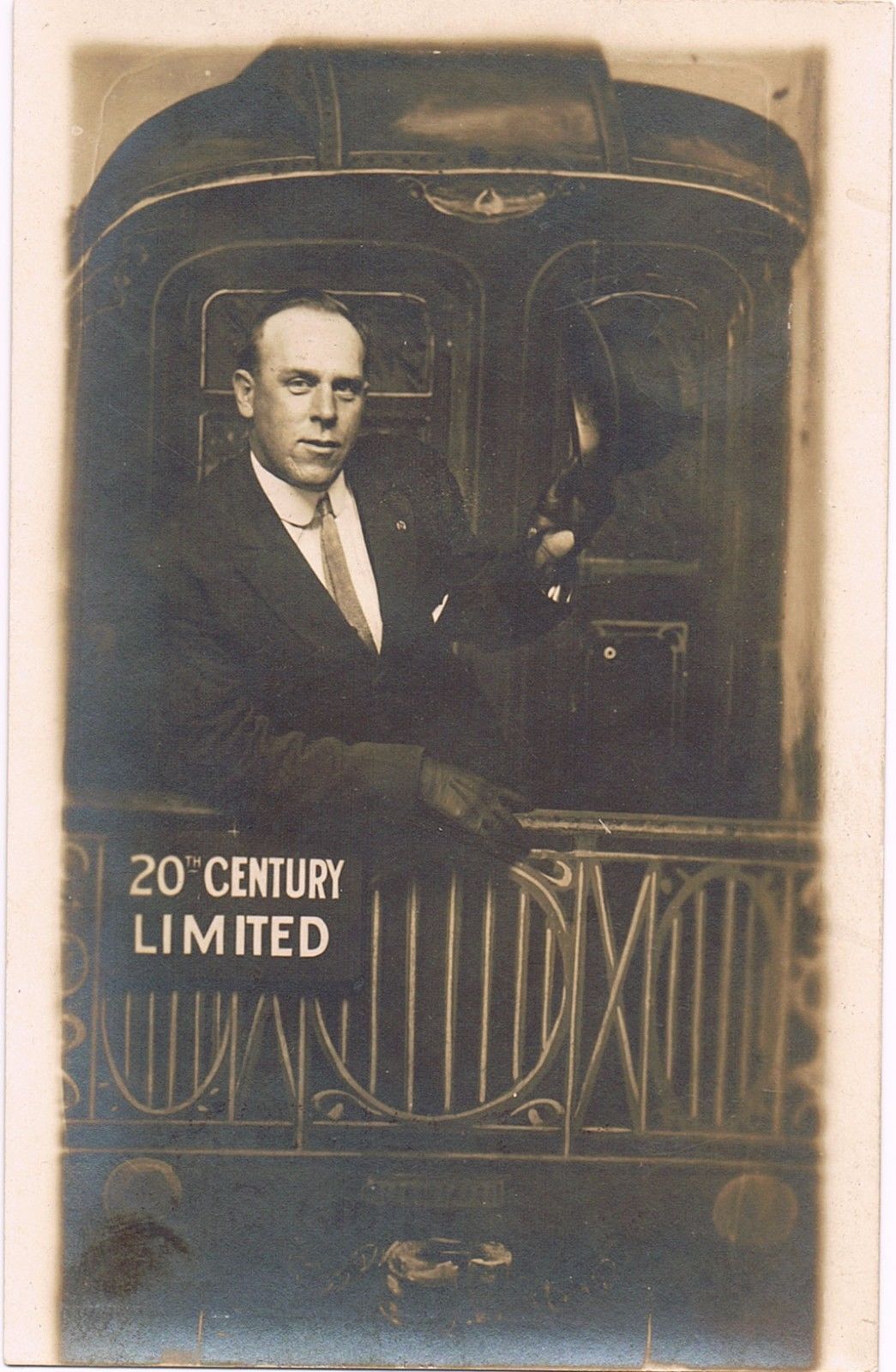 Title (ebay affiliate link): RPPC~Studio Real Photo Postcard~Man On 20th Century Limited Train~New York City