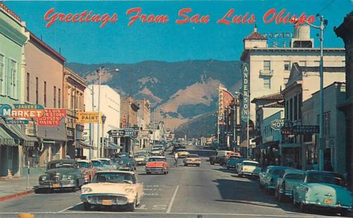 Title (ebay affiliate link): SAN LUIS OBISPO, CA California STREET SCENE c1950s Car Roadside Postcard