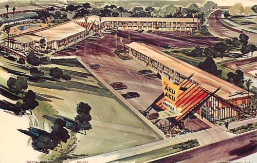 Title (ebay affiliate link): WOODLAND HILLS, CA California AKU AKU Motel c1960s Cars Roadside Polynesian