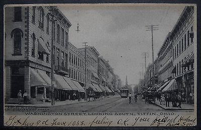 Title (ebay affiliate link): Tiffin, Ohio Washington Street, Looking South - Trolley, buggies-1906