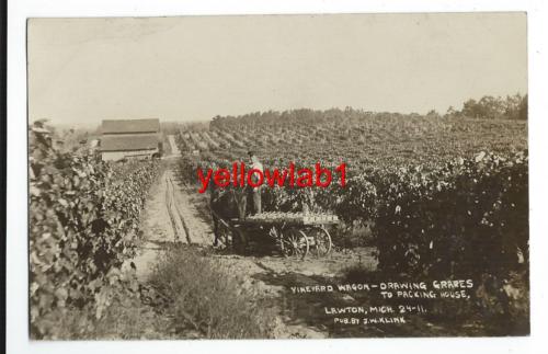 Title (ebay affiliate link): Early 1900's - Lawton, MI - Vineyard Wagon Carrying Grapes to Packing House RPPC