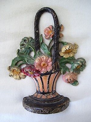 Antique Hubley No. 182 Cast Iron Cosmos Flower Basket Doorstop