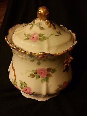 Vintage handpainted cracker jar with roses and gold