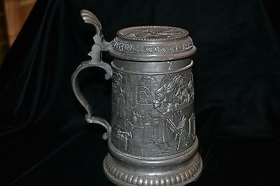 Zinn Heavy Pewter Tankard with Medieval Scene