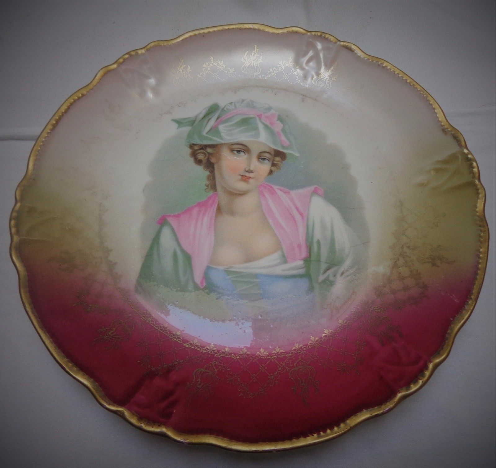 Blenheim China Portrait Hand Painted German Plate Signed V Bernard