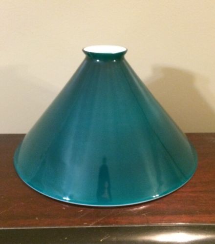 Title (ebay affiliate link): Vtg Green Cased Milk Glass Lamp Shade Industrial Pool Hall Style 10" Diameter