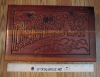 VINTAGE WOODEN SWEETHEART JEWELRY BOX EMBOSSED SIGNED "DEAREST" 10 1/2" X 7"