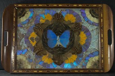 NobleSpirit 3970 Antique Butterfly Wing Art Inlaid Wooden Serving Tray