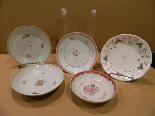 Title (ebay affiliate link): 5 Different Sprig Flowered Patterned Shallow Bowls Unmarked Early 1800's
