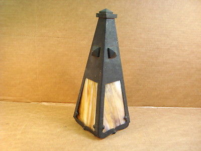 Antique Vintage Metal Base arts & crafts style has 2 Slag Glass panels RESTORE