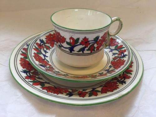 Old Birks Rawlins Stoke On Trent Cup,Saucer, Plate Hand Painted Red Floral Vine