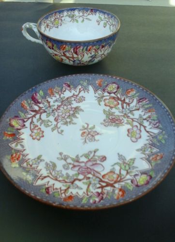 Beautiful Sarreguemines Transfer Ware Cup & Saucer France Porcelain