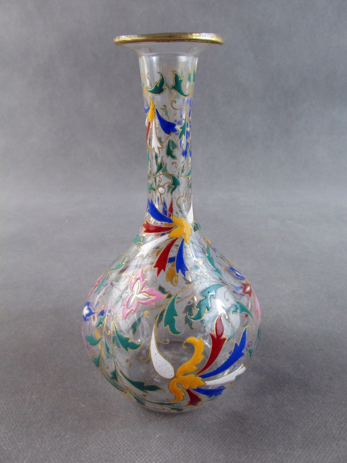 c1880 Bohemian Art Glass BITTERS BOTTLE~~Polychrome Enamel