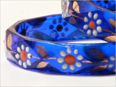 ANTIQUE cobalt flower enamell paint GLASS BANGLE ritual