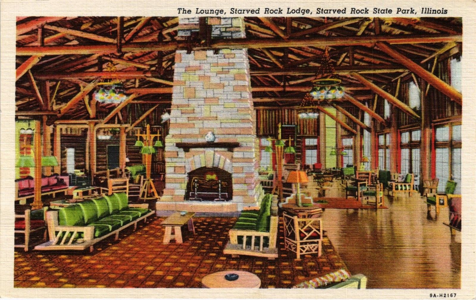 Title (ebay affiliate link): DR JIM STAMPS US STARVED ROCK LODGE INTERIOR ILLINOIS LINEN COLORTONE POSTCARD