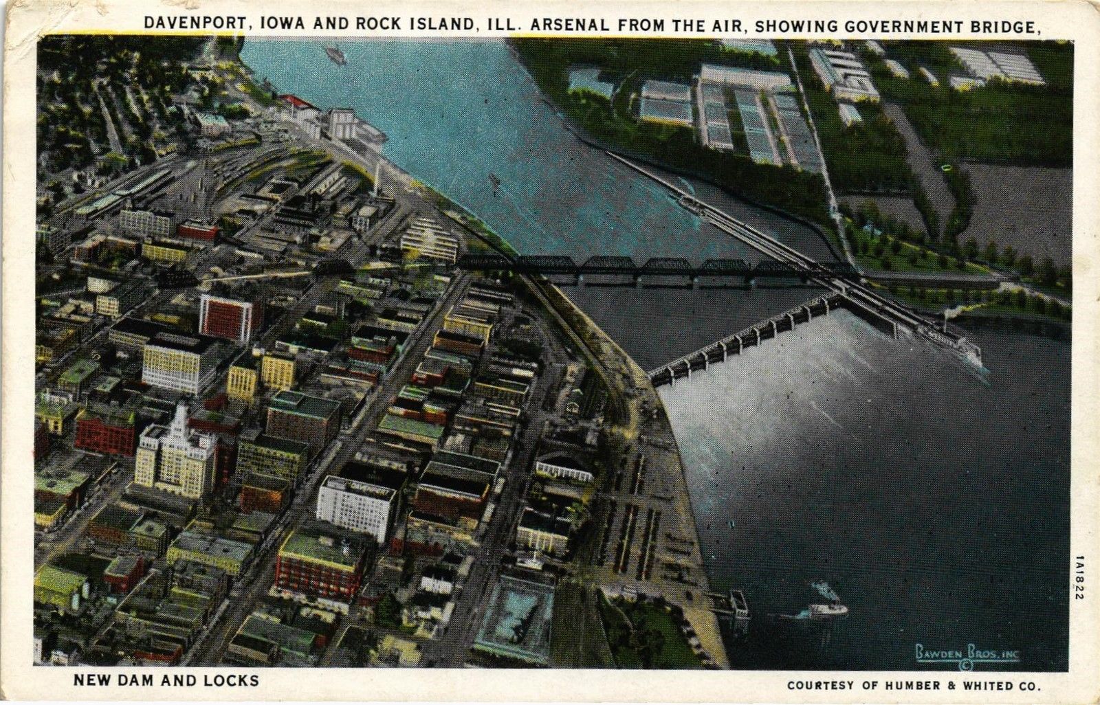 DR JIM STAMPS US DAVENPORT IOWA & ROCK ISLAND, ILL DAM & LOCKS POSTCARD