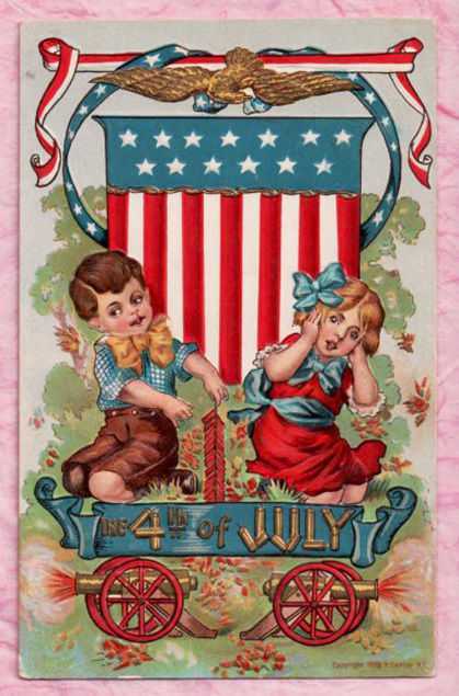 Title (ebay affiliate link): PATRIOTIC FOURTH OF JULY KIDS CELEBRATE W/ FIRECRACKERS ~ SUPER COLORFUL IMAGE!