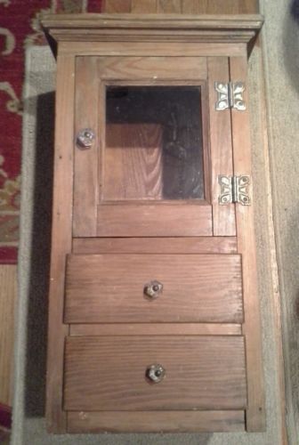 Title (ebay affiliate link): Primitive Handmade Antique Wall Shaving Cabinet W/ Glass knobs Drawers Medicine