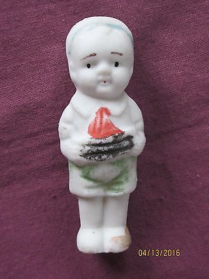 Antique Bisque Doll Frozen Charlotte Penny Doll Boy w Sailboat 2 1/2" COLLECTIBL