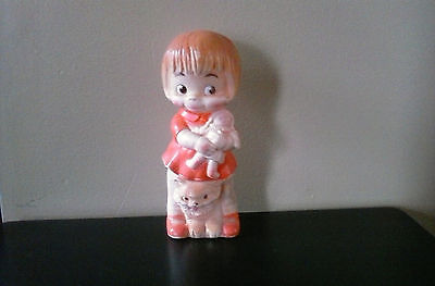 Title (ebay affiliate link): Rubber Squeaky Toy - J.T. Prescott - Girl with Doll and Kitten - 8.5" Tall