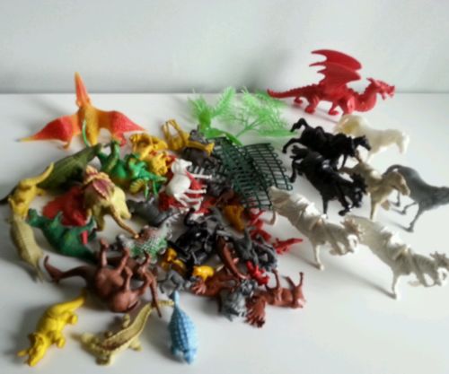 Old Toys, Animal figures, Plastic, Dinosaurs, Zoo animals, Horses