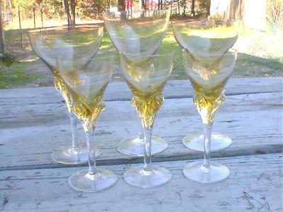 Title (ebay affiliate link): Elegant Fancy Stem Wine Glasses Yellow Clear Ground Rim