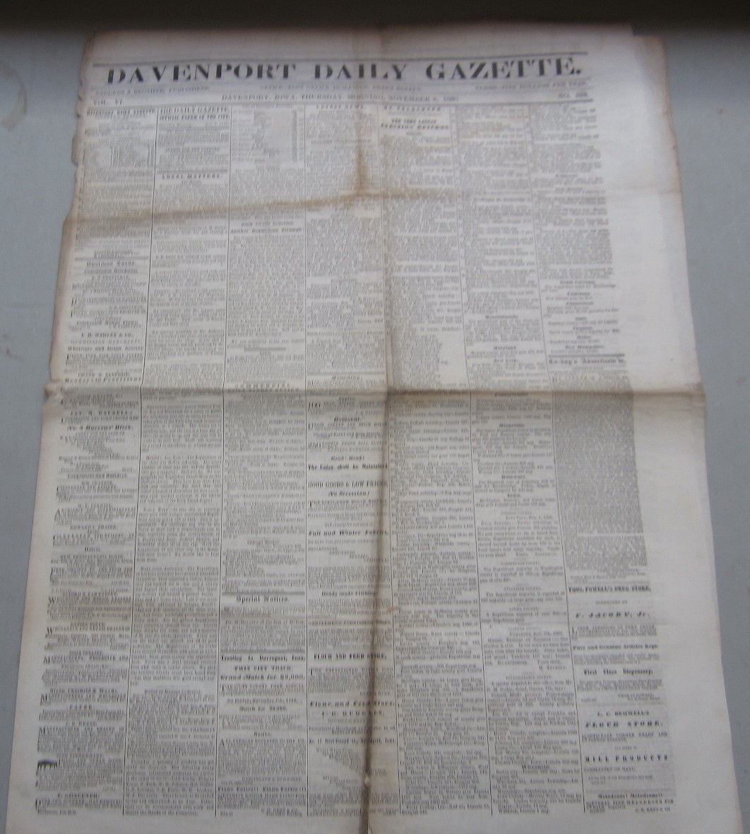 Title (ebay affiliate link): Original Old 1860 Abraham Lincoln ELECTION NEWSPAPER - Nov 8th Davenport Iowa