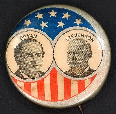 Title (ebay affiliate link): BRYAN - STEVENSON POLITICAL JUGATE CELLULOID BUTTON PIN PINBACK 1 1/4"