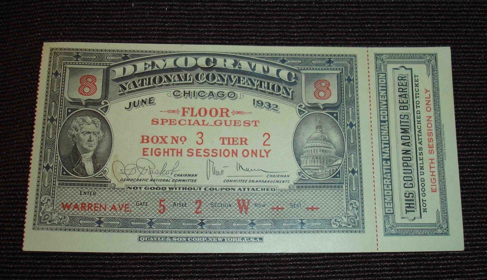 Minty,Real 1932 Chicago Democratic Convention Ticket & Stub FDR-Roosevelt!