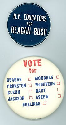 Title (ebay affiliate link): 2 Vintage 1984 New York President Ronald Reagan Political Pinback Buttons