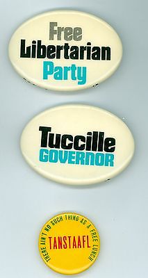 Title (ebay affiliate link): 3 Vintage 1974 New York Governor Tuccille Libertarian Political Pinback Buttons